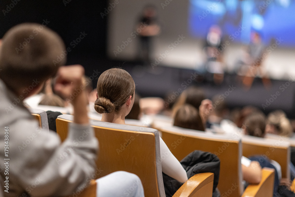 Interview and round table discussion at business convention and presentation. Audience at the conference hall. Business and entrepreneurship symposium. #1751438061