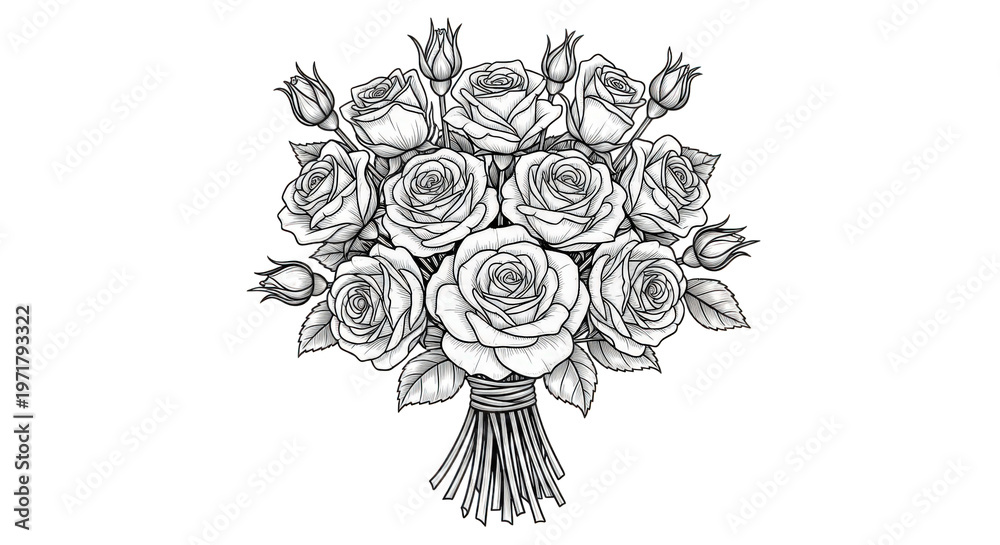 Intricate black and white line drawing of a stylized tree with abstract branches and leaves isolated on transparent background #1971793322