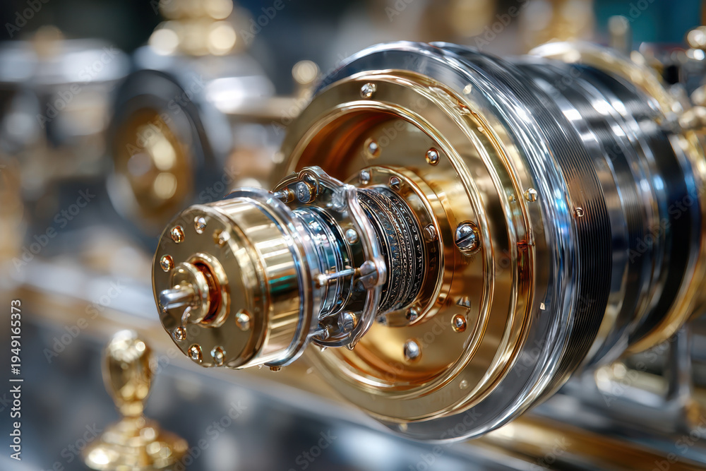 Intricate details of a brass machine component in a workshop setting #1949165373