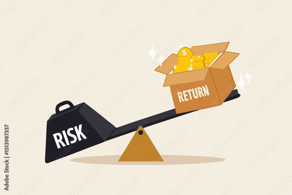 Investment high risk high expected return, investor risk appetite in securities and investment asset to get high reward concept, balance with heavy risk burden make box of rich money dollar reward. #1513987337
