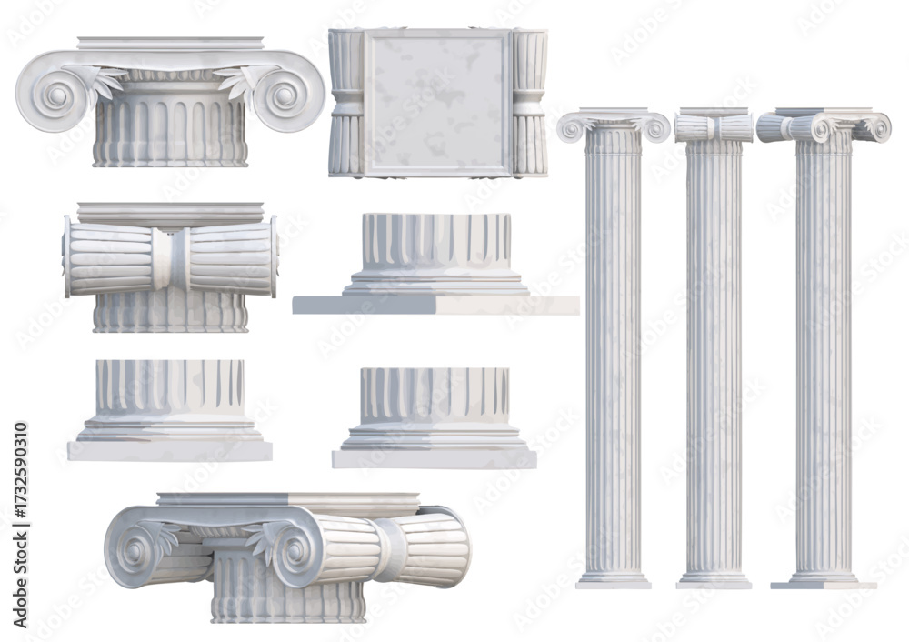 Ionic pilaster capitals assets, top, some bottom, different direction vector objects created by 3D modeling marble material. #1732590310