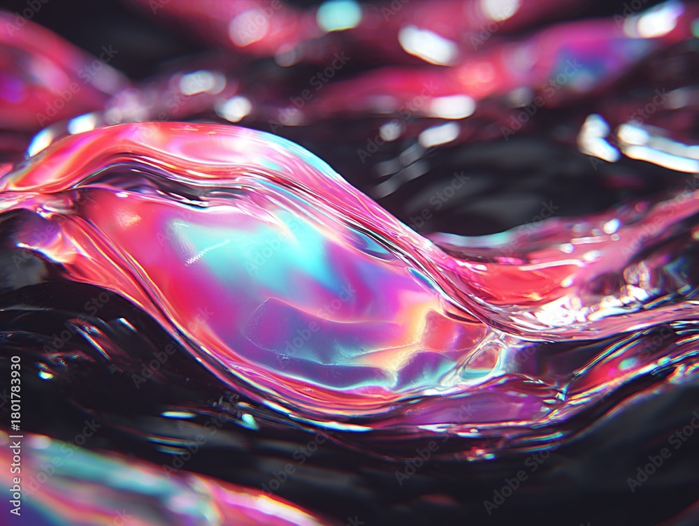 Iridescent liquid waves ripple with neon pink and blue light, creating a surreal close-up of shifting color, fluid reflections, and mesmerizing luminous motion #1801783930