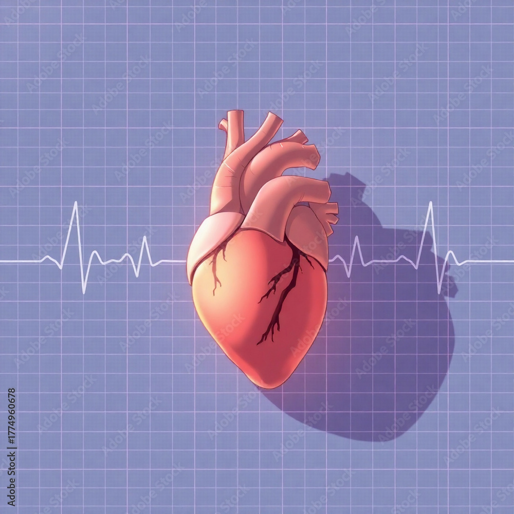 Isekai anime style illustration a human heart on an ECG graph background. Gentle, soft light, diffused shadows, subtle illumination, and expressive composition #1774960678