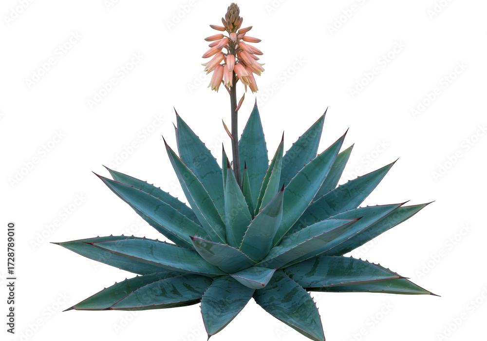 Isolated agave plant with peach-colored flower blossom against simple background – botanical design #1728789010