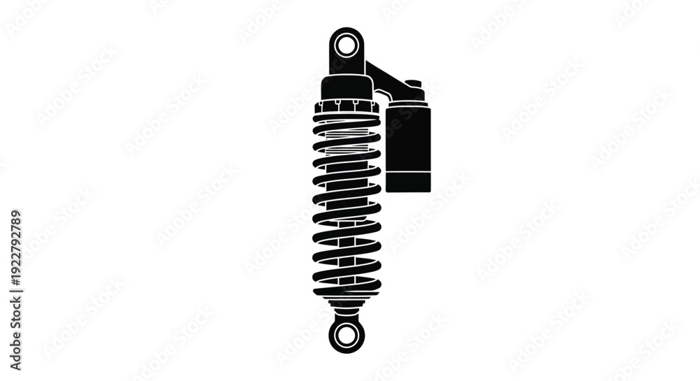 Isolated black and white illustration of a motorcycle rear shock absorber #1922792789