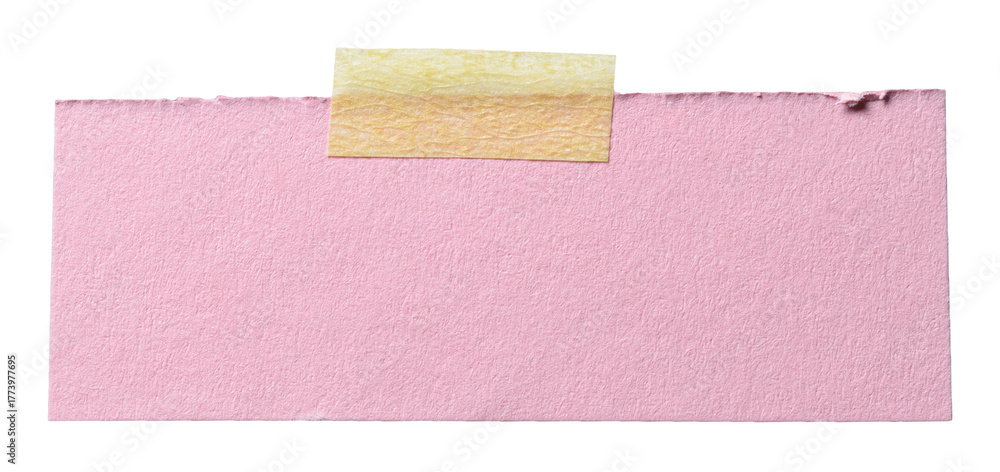 Isolated cut out torn piece of pink paper note with rough texture and adhesive sticky tape with copy space for text, transparent png background design element #1773977695