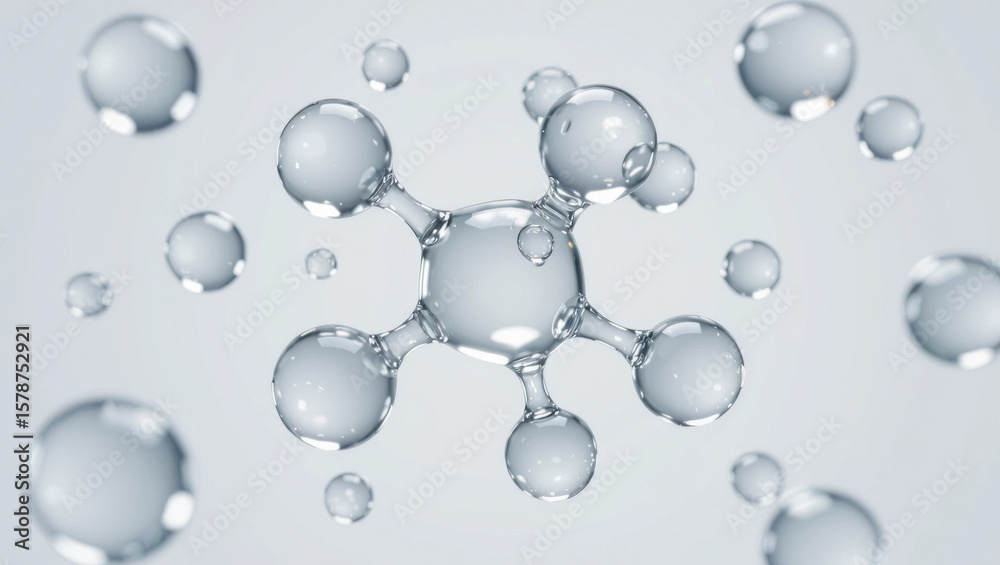 Isolated 3D structure of a hyaluronic acid molecule on a minimalist white background, showcasing high detail and soft light reflections without any bubbles or droplets. #1578752921