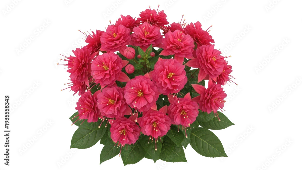 Isolated double fuchsia plant, beautiful blossom, gorgeous vibrant colors, perfect bloom #1935558343