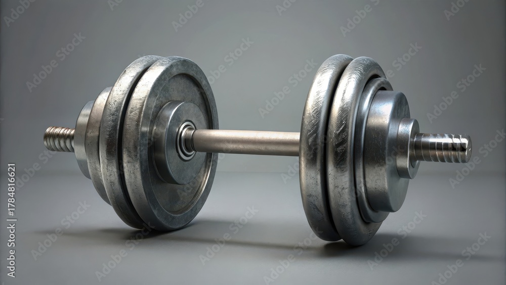 Isolated dumbbell with four weights on a grey background #1784816621