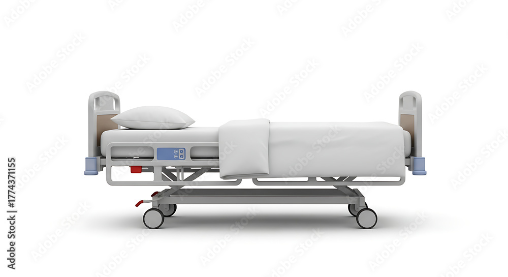 Isolated hospital bed with white sheets and pillow on a white background in a studio shot view ai generated #1774371155