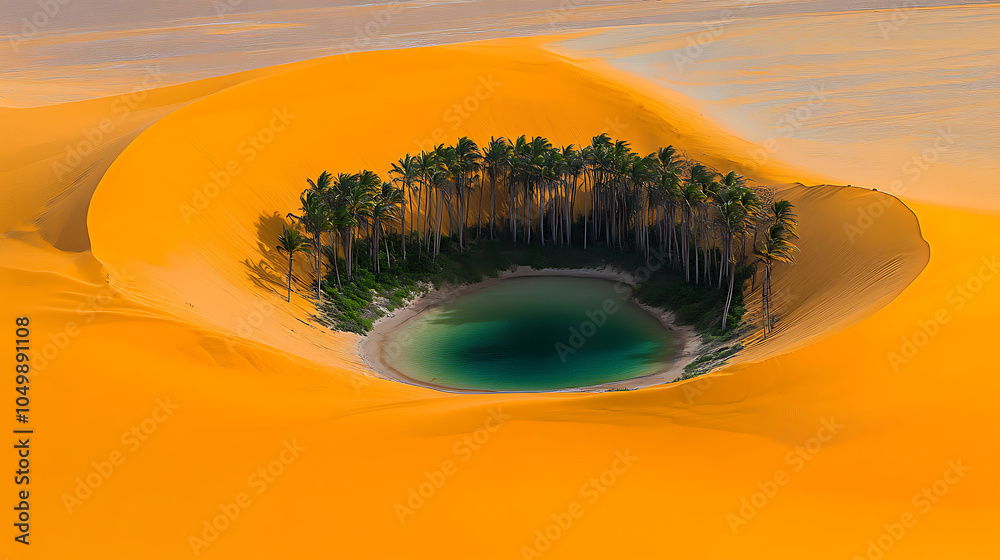 Isolated oasis surrounded by sand dunes in the desert #1049891108