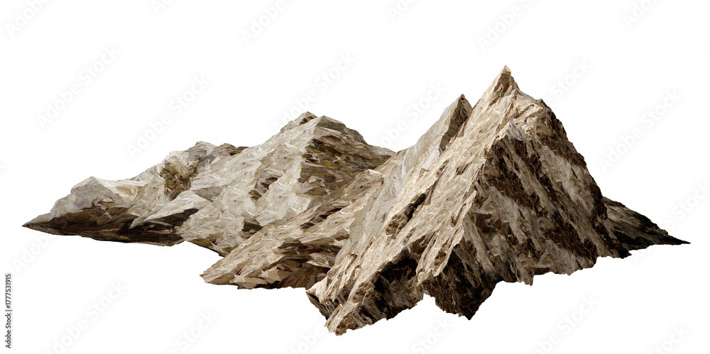 isolated on white/Rocky mountain range with sharp peaks and rugged terrain, natural landscape background isolated on white. #1777531915