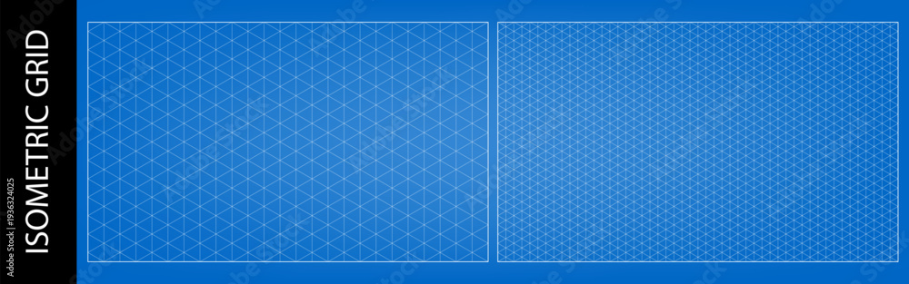 Isometric triangle grid for blueprint layout diagram, angular drawing. Math architecture surface bg with 60 lines, cubic mesh plan. Abstract empty technical manual chart in blue geometric dots graph #1936324025