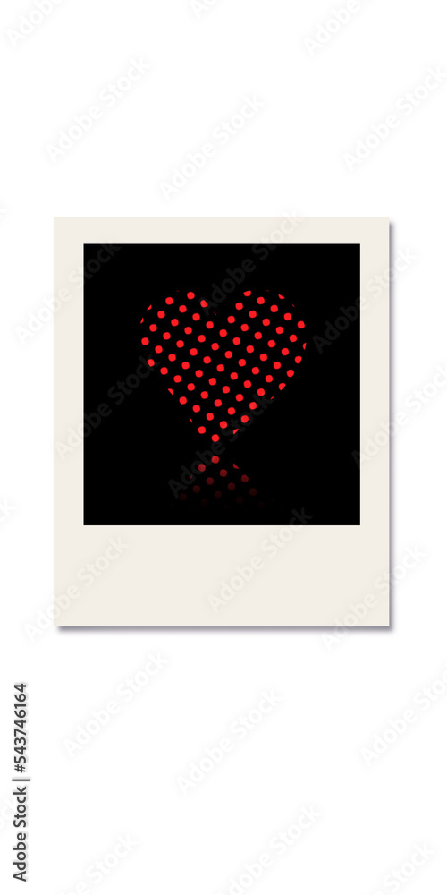 istantanea tipo polaroid di cuore di punti rossi su sfondo nero #543746164