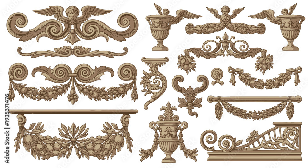 Italian Renaissance Fresco Borders and Florentine Grotesque Vector Ornaments #1925371476