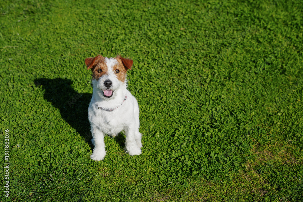 Jack russell terrier on the grass. Copy space, background. #1911862076