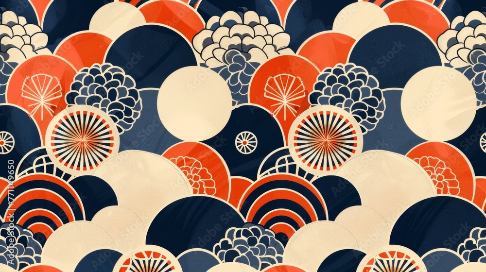 Japanese geometric pattern, inspired by traditional kimono prints #771149650