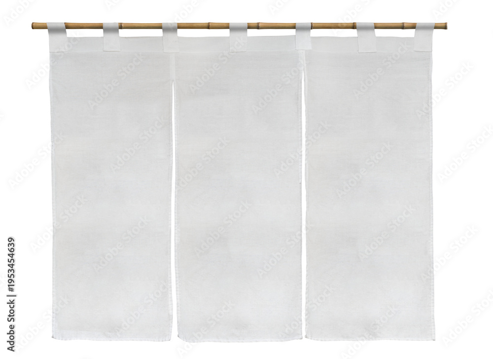 Japanese noren curtains hanging from a bambu. Traditional japanese white noren curtain. のれん #1953454639