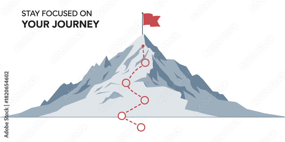 journey concept vector illustration of a mountain with path and a flag at the top, route to mountain peak, business journey and planning #1820654602