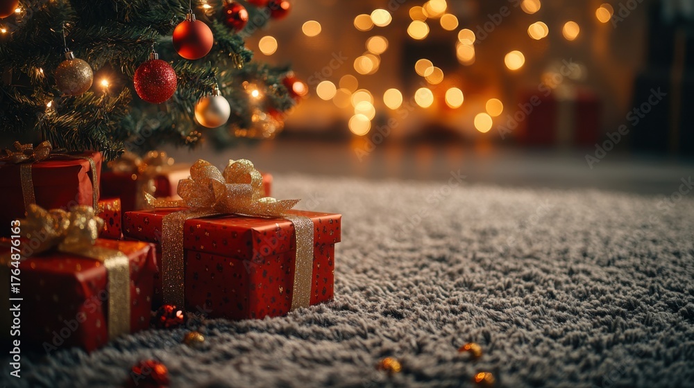 Joyful christmas celebration with presents cozy living room holiday scene warm atmosphere close-up view festive spirit #1764876163
