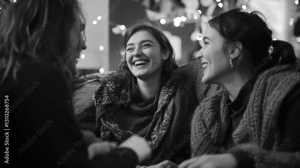 Joyful gathering of friends relaxing indoors with cozy atmosphere #1310268754