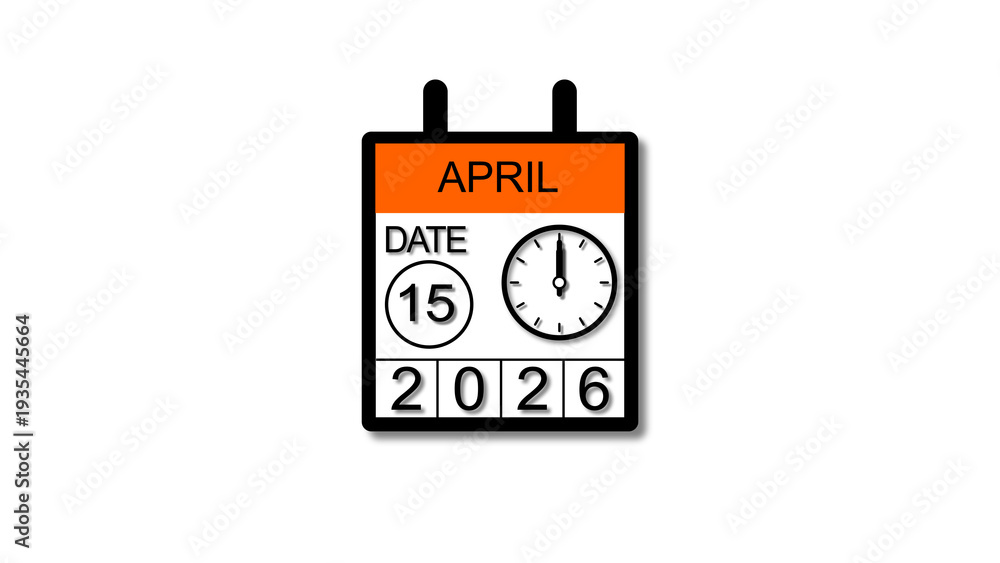 4K calendar illustration April 15 date 2026 illustration . black background clean and stunning 4k illustration. #1935445664