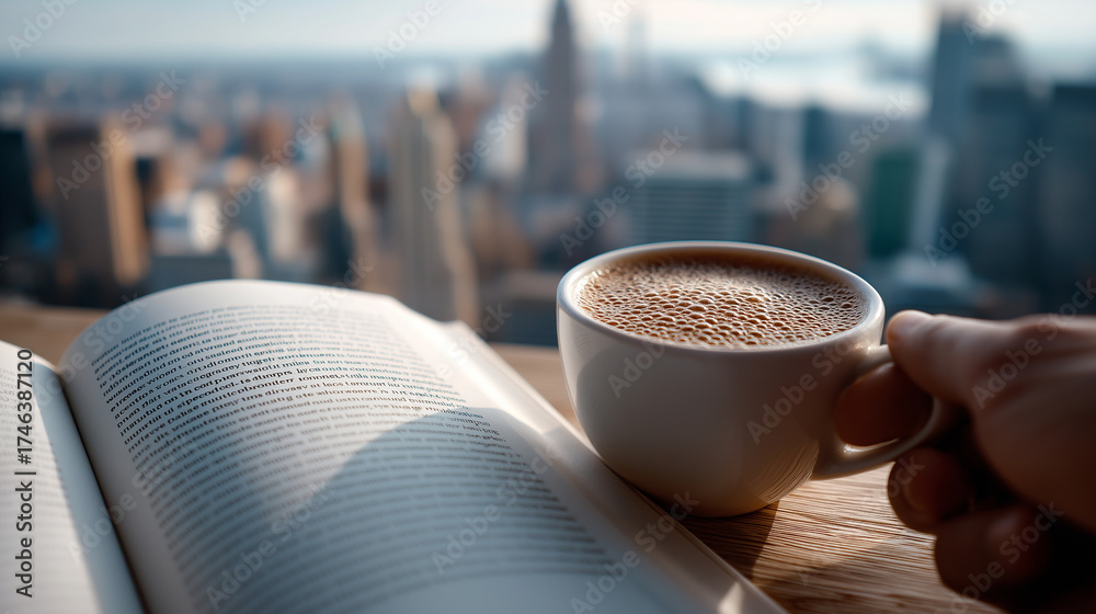 Kaffeetasse mit Stadtpanorama im Hintergrund - Morgenroutine und urbaner Genuss #1746387120