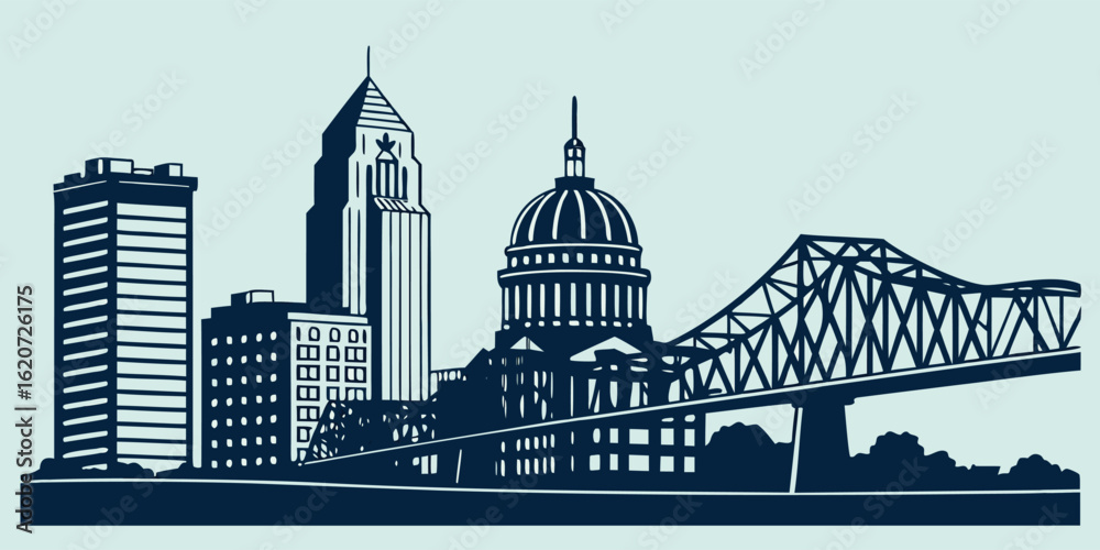 Kentucky Cityscape Vector: Louisville's 400 West Market & Big Four Bridge #1620726175