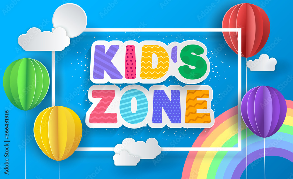 Kid's zone concept poster. Paper balloons. Vector kid's illustration #366431916