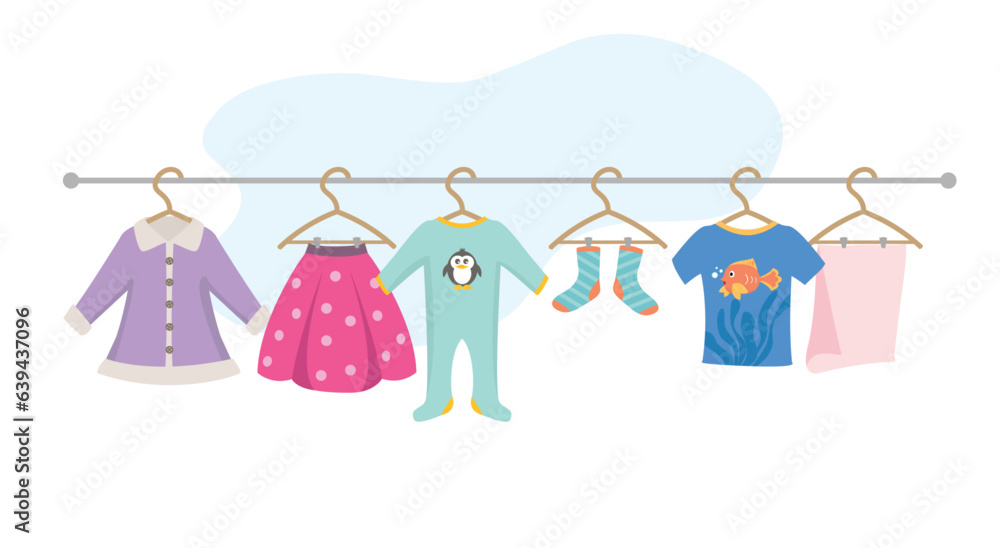 Kids Clothes Hanging on a Line Outside To Dry #639437096