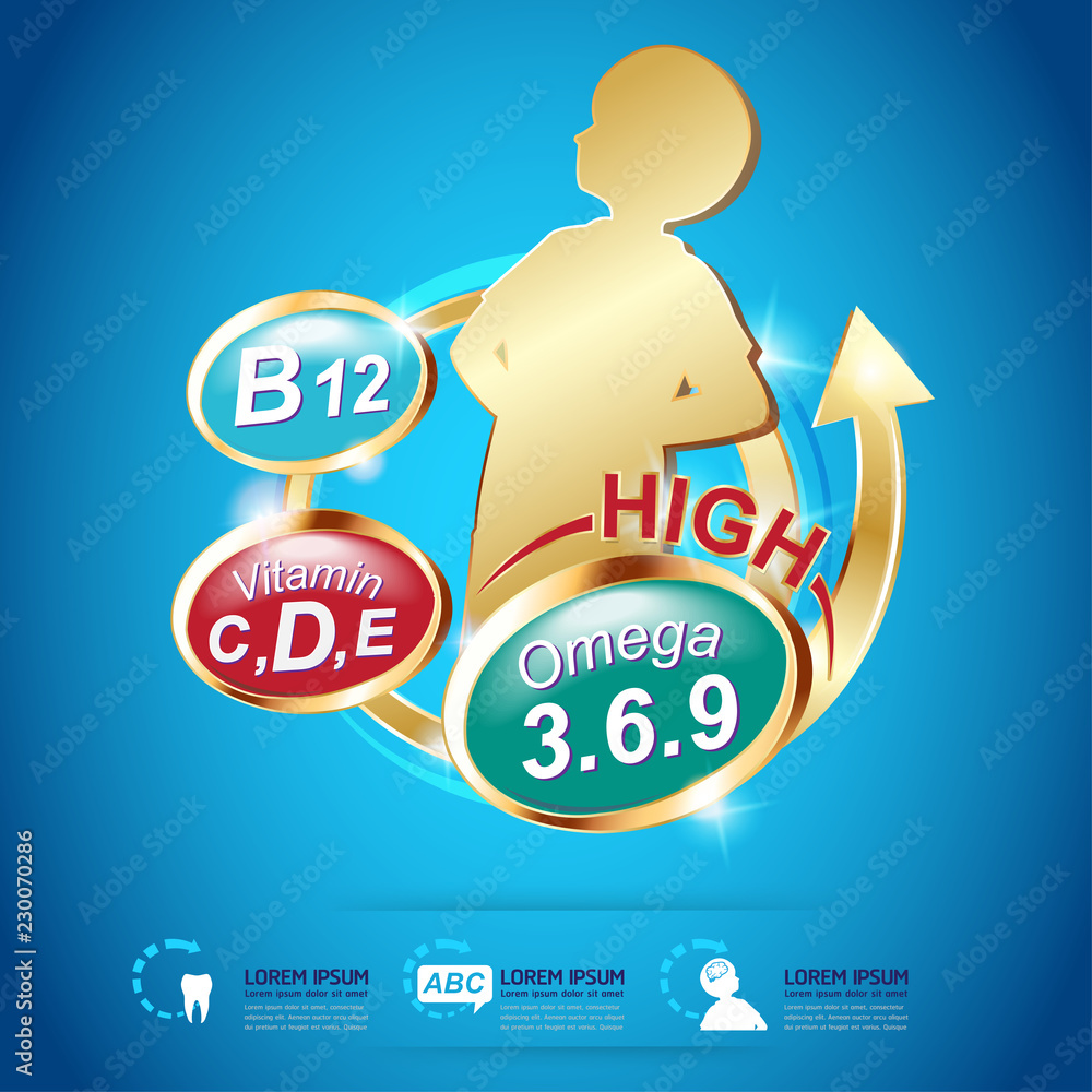Kids Omega 3 vitamin Concept Vector #230070286