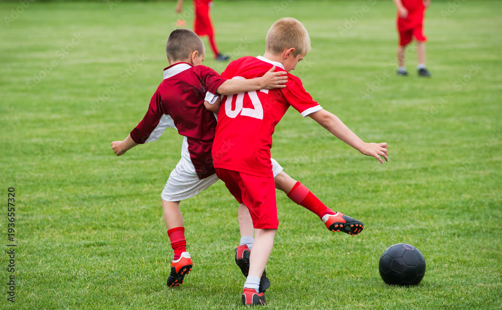 Kids soccer football - children players match on soccer field #1936557320