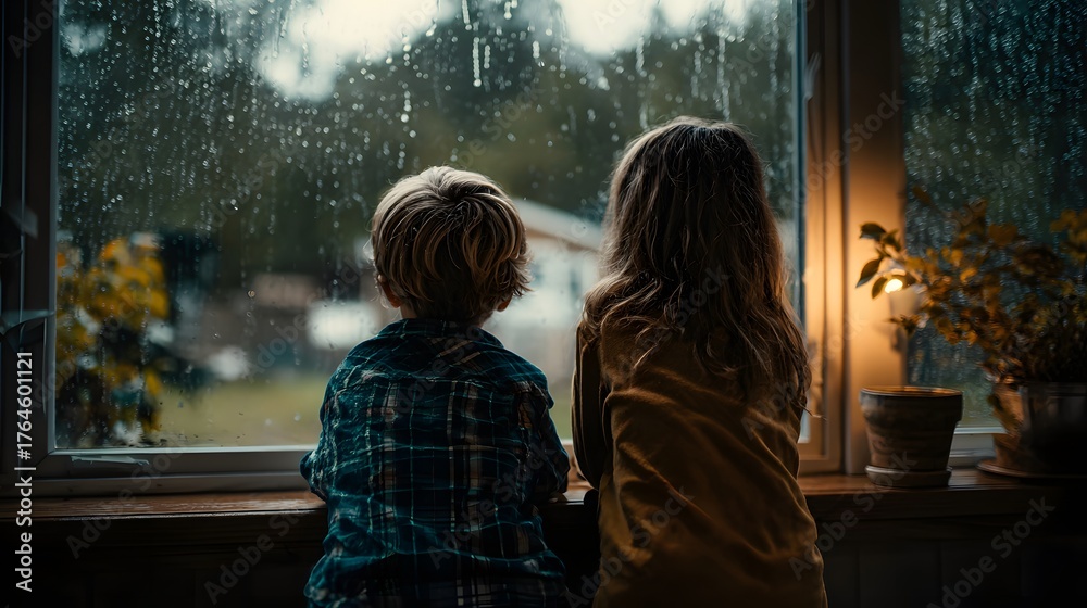 Kind läuft mit Drachen über Feld vor Bergkulisse im Abendlicht #1764601121