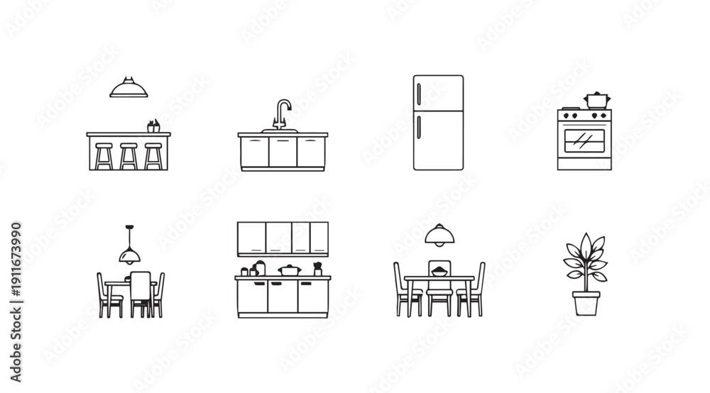 Kitchen Icons Set: Line Art Elements for Interior Design and Home Planning #1911673990