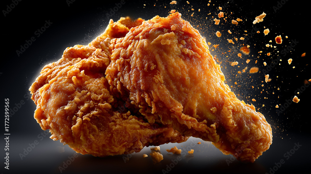 Knusprige frittierte Chicken mit goldbrauner Kruste auf weißem Hintergrund #1772599565
