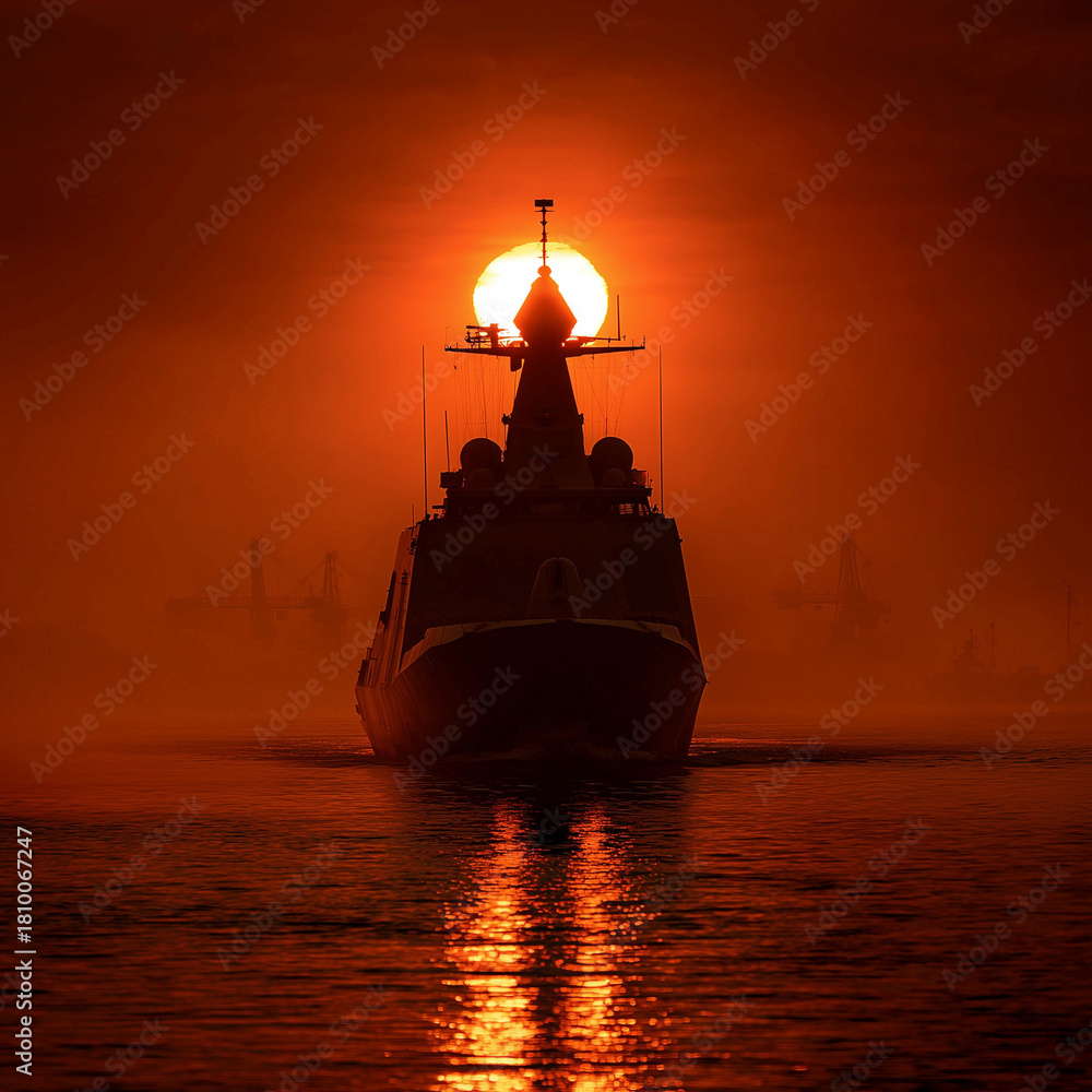 kriegsschiff im sonnenaufgang sonnenuntergang #1810067247