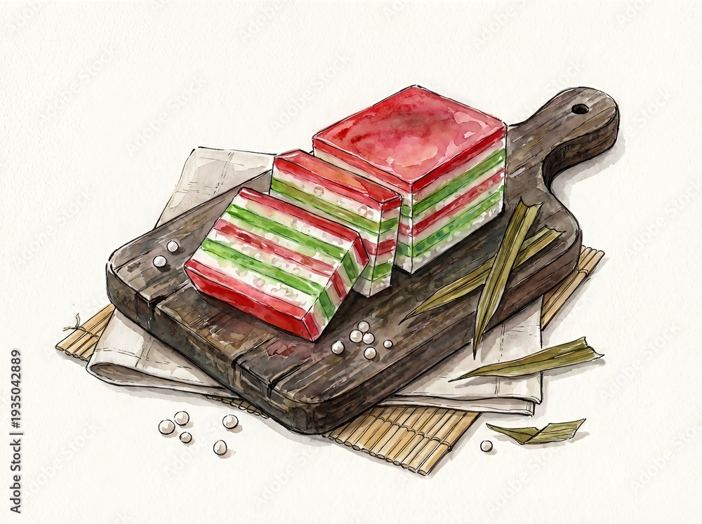 Kue Lapis Slice on Wooden Board - A Colorful Indonesian Layer Cake. #1935042889