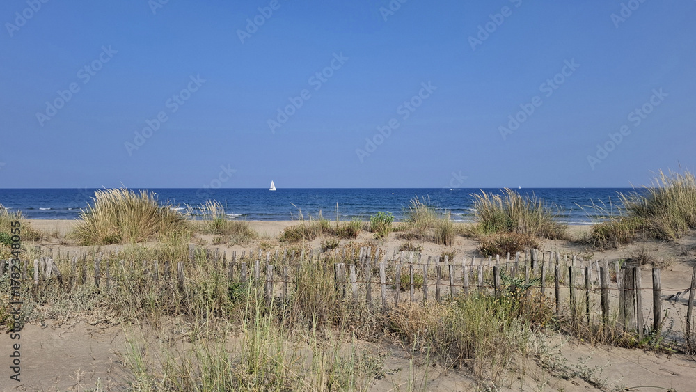 La grande plage de sable entre Sète et Marseillan dans le département de l'Hérault en France #1782348055