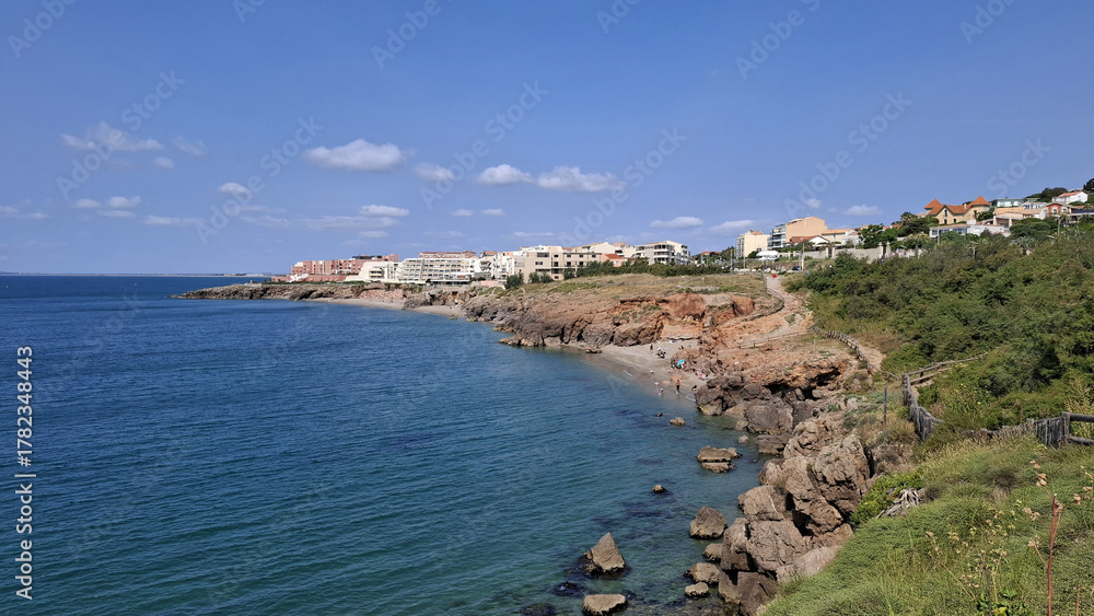 La grande plage de sable entre Sète et Marseillan dans le département de l'Hérault en France #1782348443