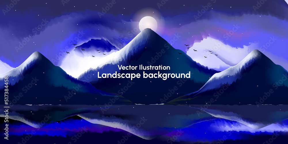 Landscape of dramatic night sky cosmos with mountain in water color paint style #517384458