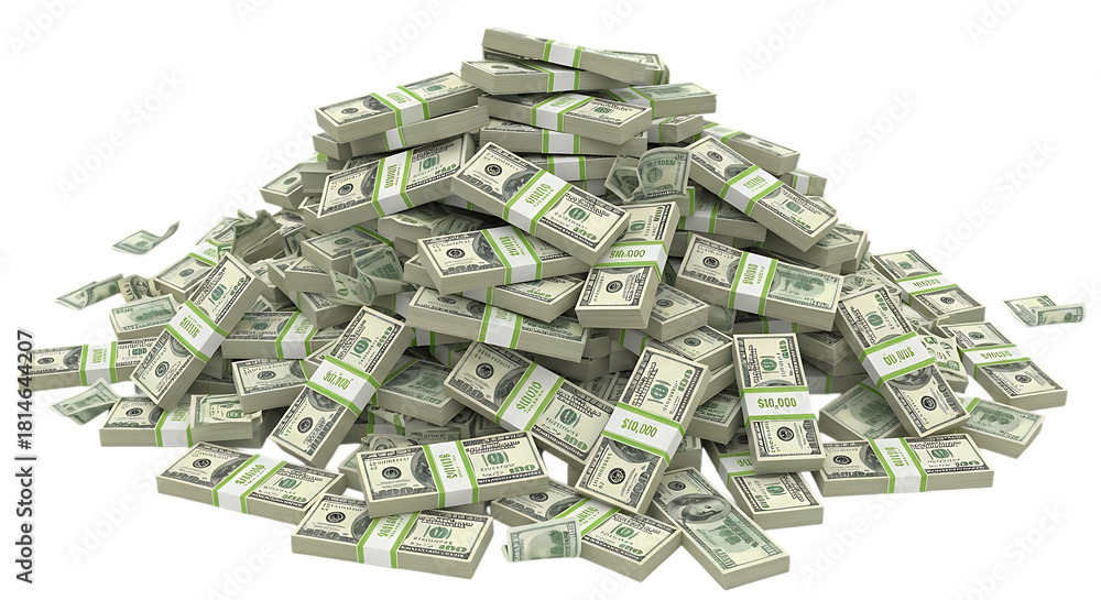 Large pile of stacks of US dollar bills on a black background money cash isolated on a transparent background #1814644207