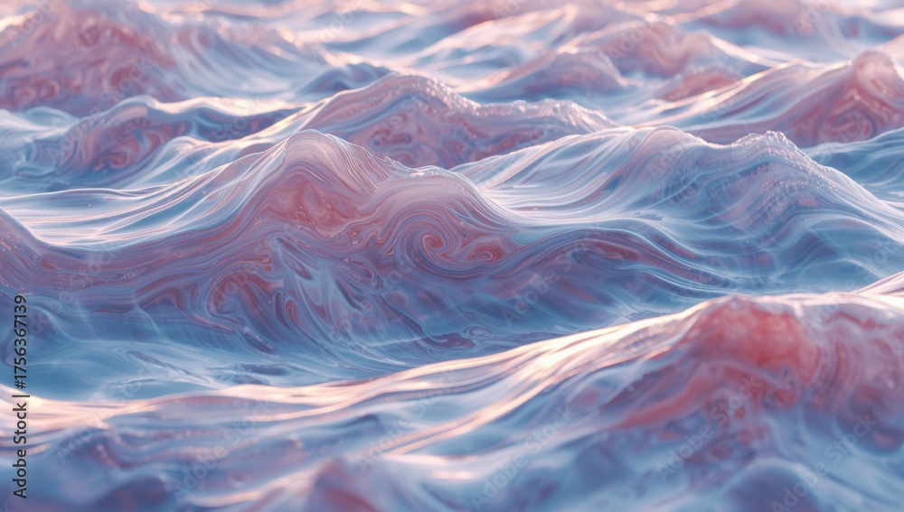 Las suaves olas del mar brillando al amanecer reflejan colores pastel y crean un ambiente de paz y serenidad en la costa #1756367139