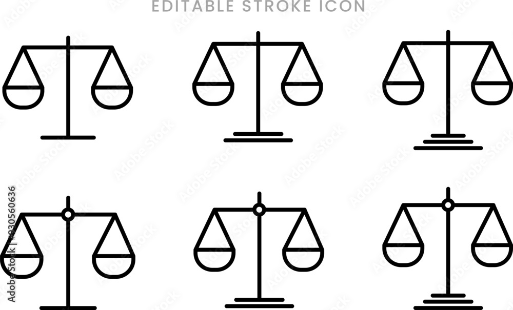 Law scale icon set. Justice scales symbol. Judge equality sign vector illustration editable stroke #930560636
