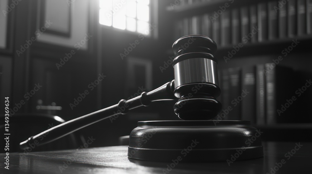 Lawsuit gavel in courtroom setting; legal proceeding #1349369634