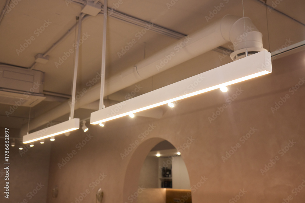 Lighting arrangement emphasizes fixtures and architectural features, Technical adjustments enhance product presentation through layered lighting and structural accents #1786662897