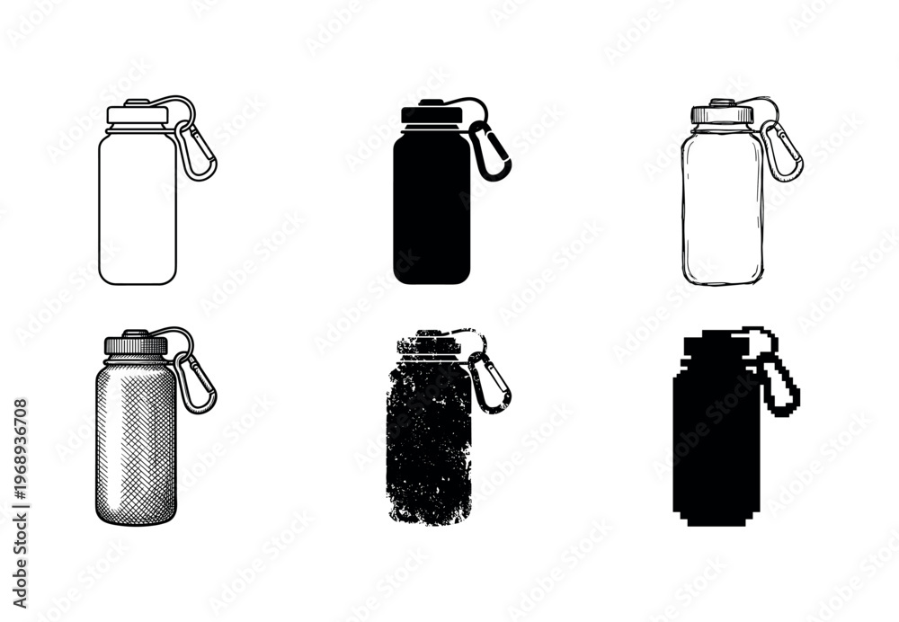lightweight outdoor water bottle with carabiner, arranged as a clean Variant 1: clean thin outline, no #1968936708
