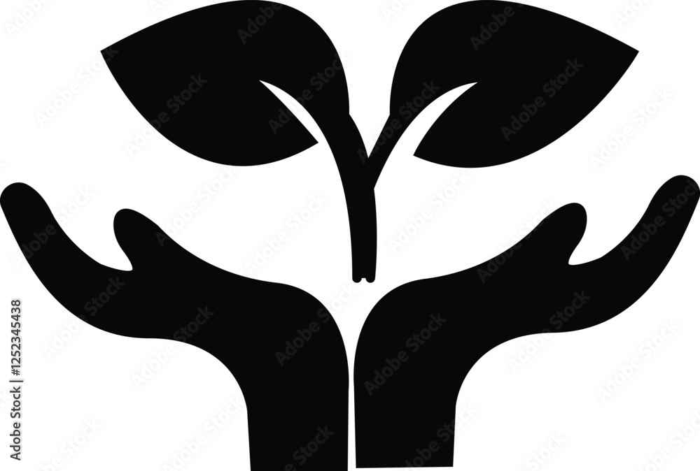 Line icon of hands cradling a plant, representing care for nature, sustainability, or environmental stewardship. #1252345438