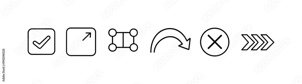 Line style icons of content navigation states: current step tile, next-step preview frame, multi-route grid, looping path arc, #1942046528