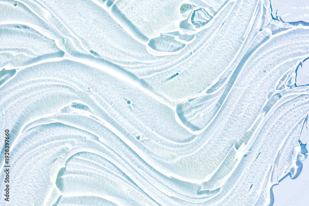 Liquid blue gel cosmetic smudge blue with sun reflects. Beauty product sample swatch #1928397660