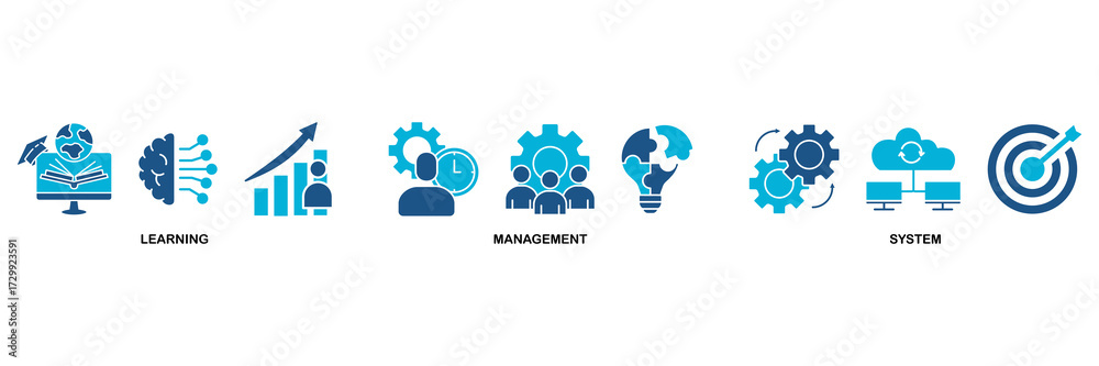 LMS icon set vector illustration concept for learning management system, educational courses, training and development programs with online learning, administration, growth, and automation icon #1729923591